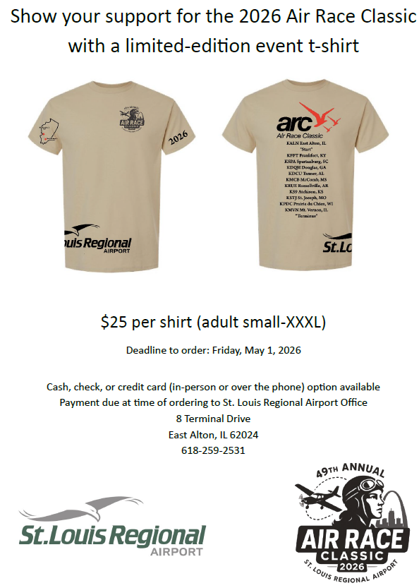 The Air Race Classic is an all-female piloted aviation race featuring upwards of 60 teams from across the country, all competing in flying a pre-determined four-day route spanning 2,400 nautical miles. For the first time ever, St. Louis Regional Airport will serve as the starting point for this exciting event.